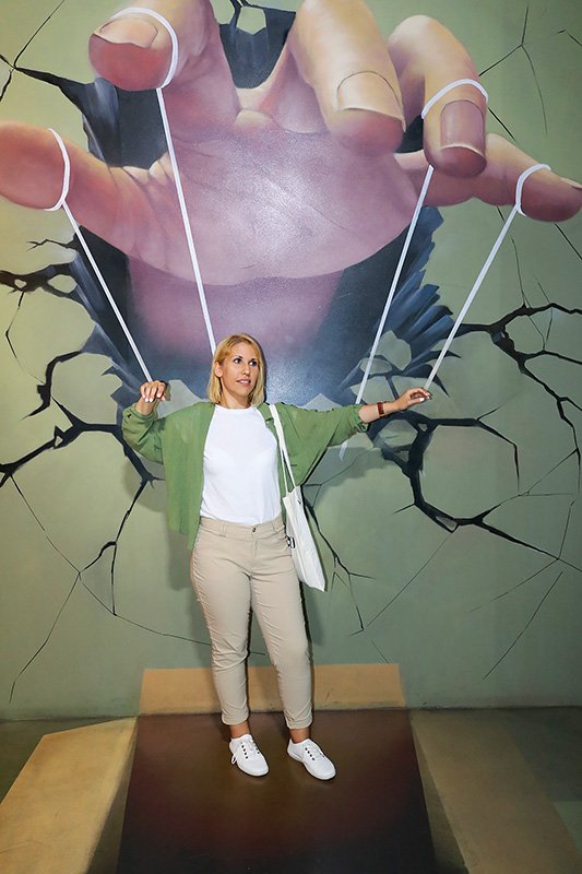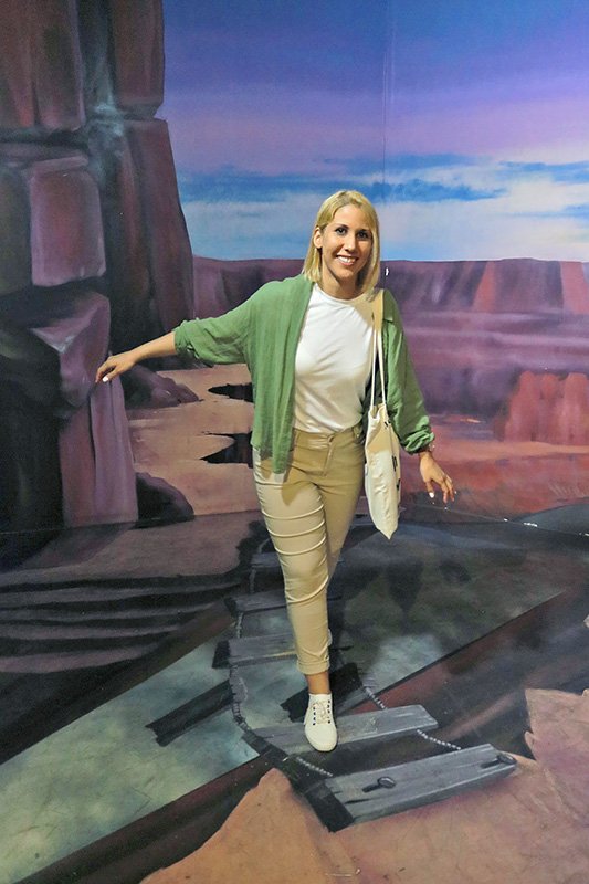 As someone who usually gravitates toward art museums and historical exhibitions, I wasn’t sure if this would be my kind of place. But within minutes, I was posing and taking photos, and seeing how cleverly the illusions transformed ordinary snapshots into surreal adventures with lots of Spain symbols in the pictures.